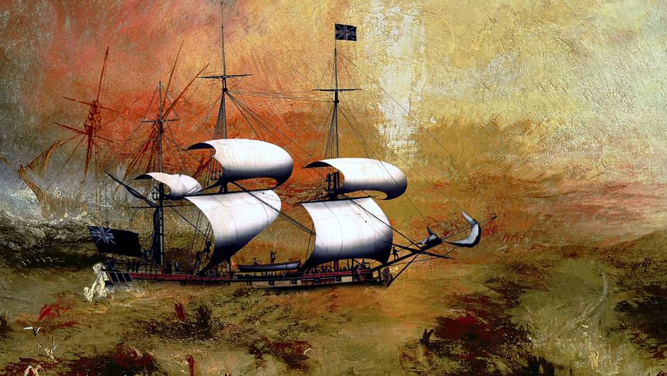 Trente ans après l’abolition de la traite négrière par le Royaume-Uni, le peintre britannique J. M. W. Turner donne à l’art du paysage une ampleur inédite. Il peint de sa touche tourmentée le portrait d’une Angleterre embrassant les nouveaux paradigmes économiques et scientifiques de la révolution industrielle, prémices d’une future mondialisation aux chaînes non moins sanglantes.