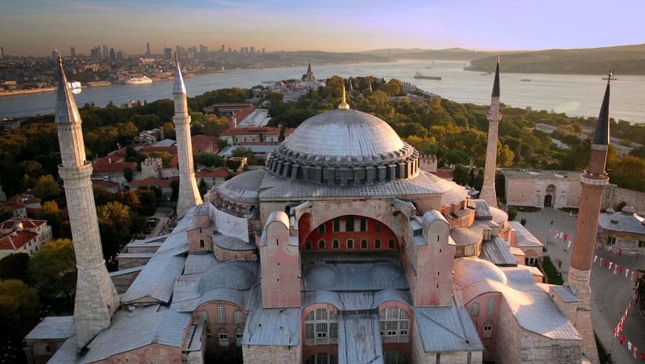 Érigée en 537, Sainte-Sophie a été pendant un millénaire la plus grande basilique chrétienne du monde. Reconvertie en mosquée lors de la conquête de Byzance, sa beauté inspirera l’architecture ottomane. En 1934, la République turque la transforme en musée. Sa restauration par Fossati met à jour des oeuvres byzantines exceptionnelles. En 2020, le président turc Erdogan décide de sa réouverture au culte musulman.