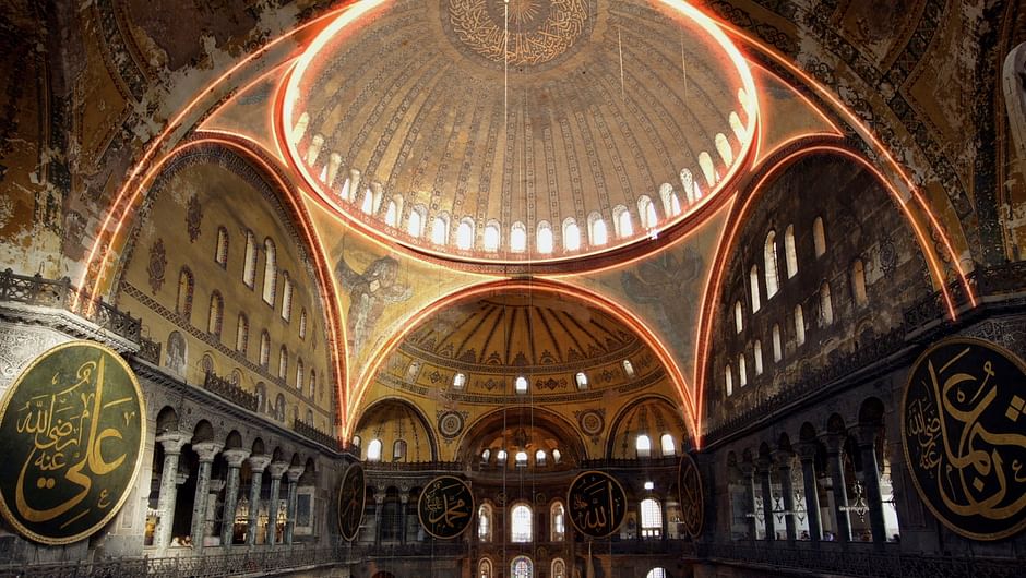 Érigée en 537, Sainte-Sophie a été pendant un millénaire la plus grande basilique chrétienne du monde. Reconvertie en mosquée lors de la conquête de Byzance, sa beauté inspirera l’architecture ottomane. En 1934, la République turque la transforme en musée. Sa restauration par Fossati met à jour des oeuvres byzantines exceptionnelles. En 2020, le président turc Erdogan décide de sa réouverture au culte musulman.